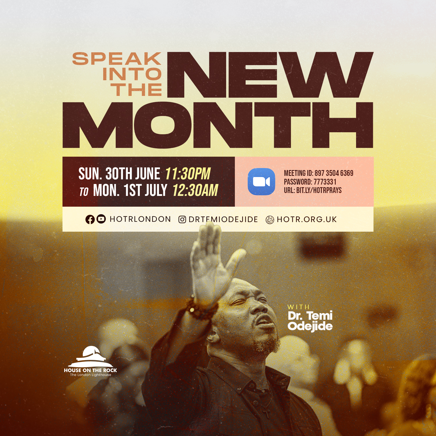 Join us via Youtube, Facebook (hotrlondon) and IG Live (temiodejide) to speak into the new month. Mark it in your calendar not to miss this key prayer session for the month to speak into the womb of the New Month.